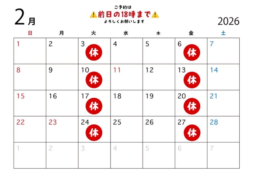2026.01.16 未分類 2026年2月営業日 kana_9802@icloud.com 2026年2月営業日のお知らせです。 寒い時こそはなちゃん家でぬくぬくしませんか?😊店長が皆様をあたためます🌸ドッグランのご予約も随時受け付けております!お気軽にお問い合わせください✨皆様のご来店お待ちしております🍫 ABOUT ME